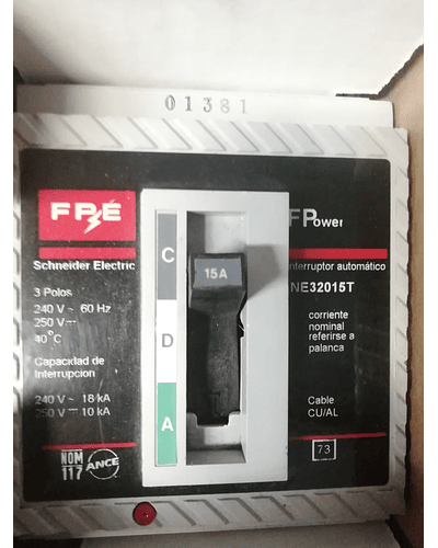 Interruptor Termomagnetico NE 3P 15A 240V TOG MCA. FEDERAL PACIFIC modelo: NE32015T